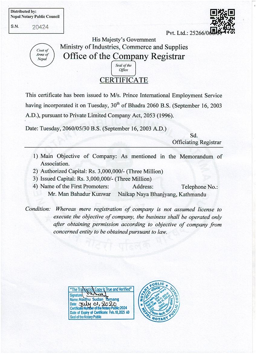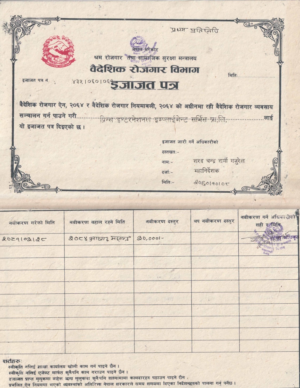 - Company Name: Prince International Employment Service Pvt. Ltd.